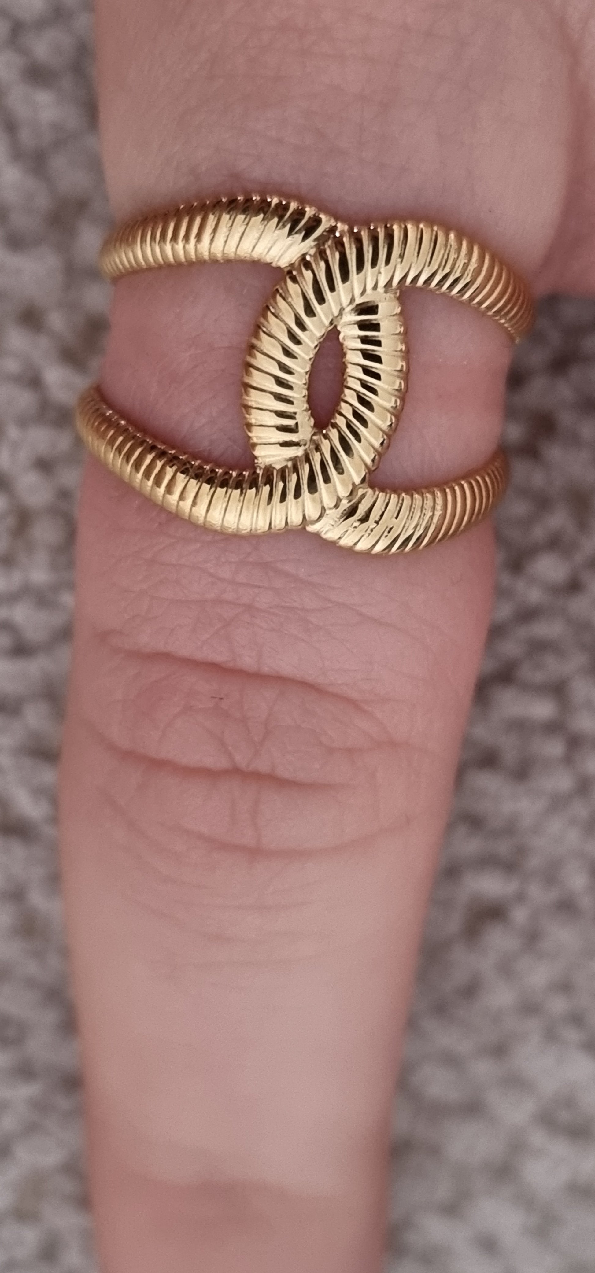 Bague Croisée formant deux anneaux s'entremêlant, en croisant il se distingue par son détail représentant une chaîne oméga.