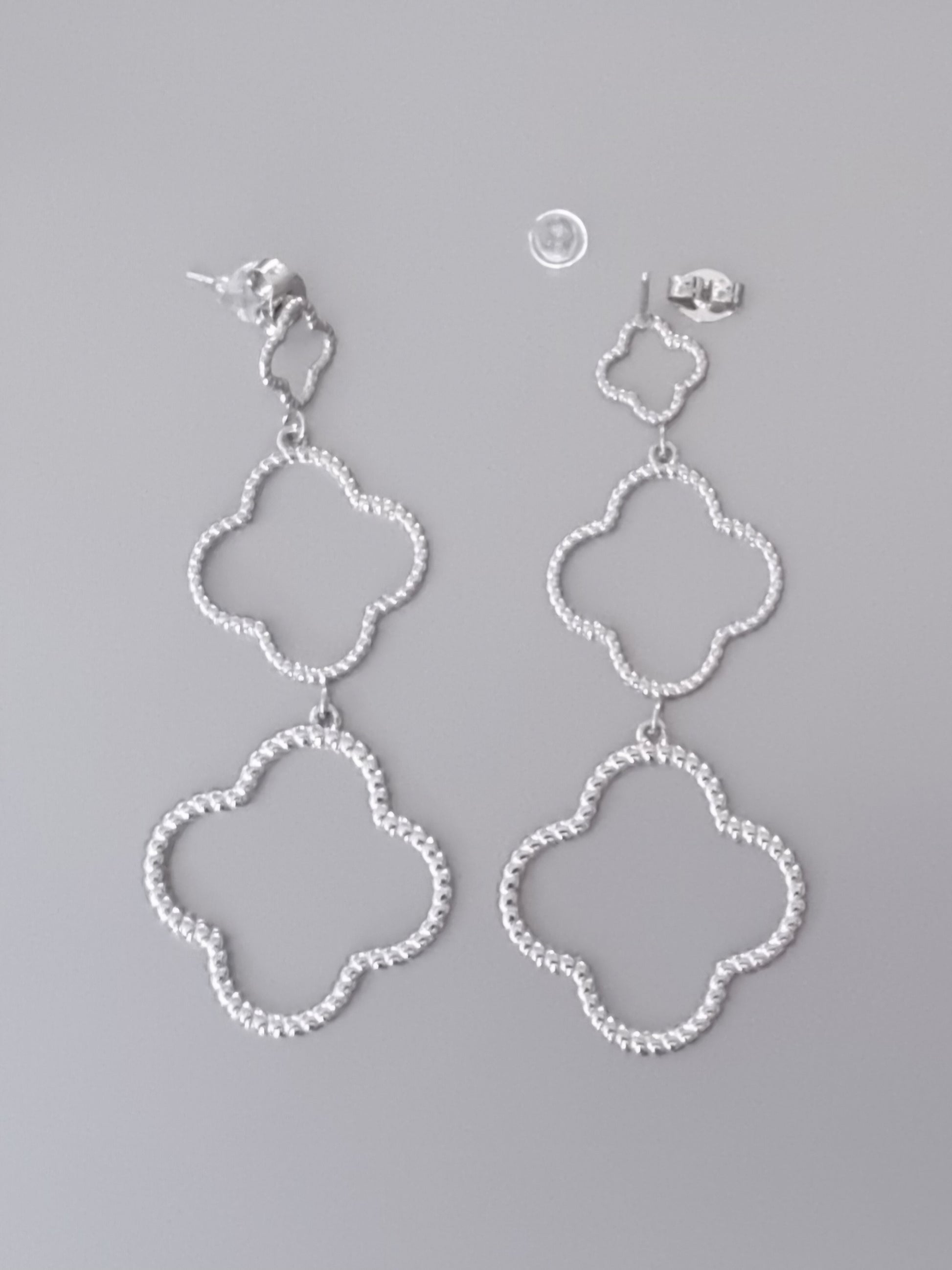 Boucles d'Oreilles Chance Pendantes en triple trèfles perlés.