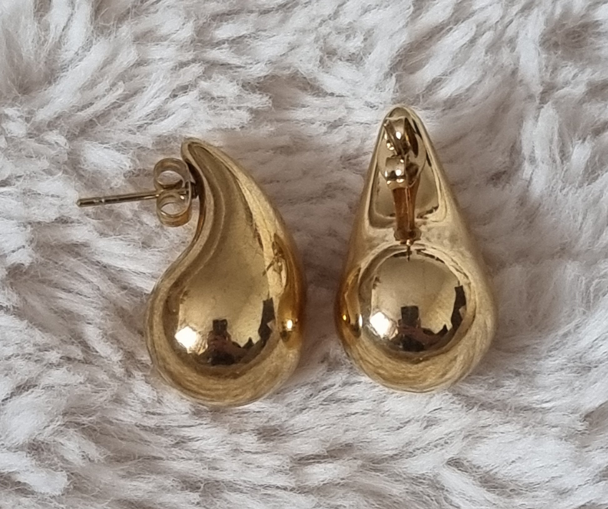 Boucles d'oreilles gouttes doré effet miroir en acier inoxydable.