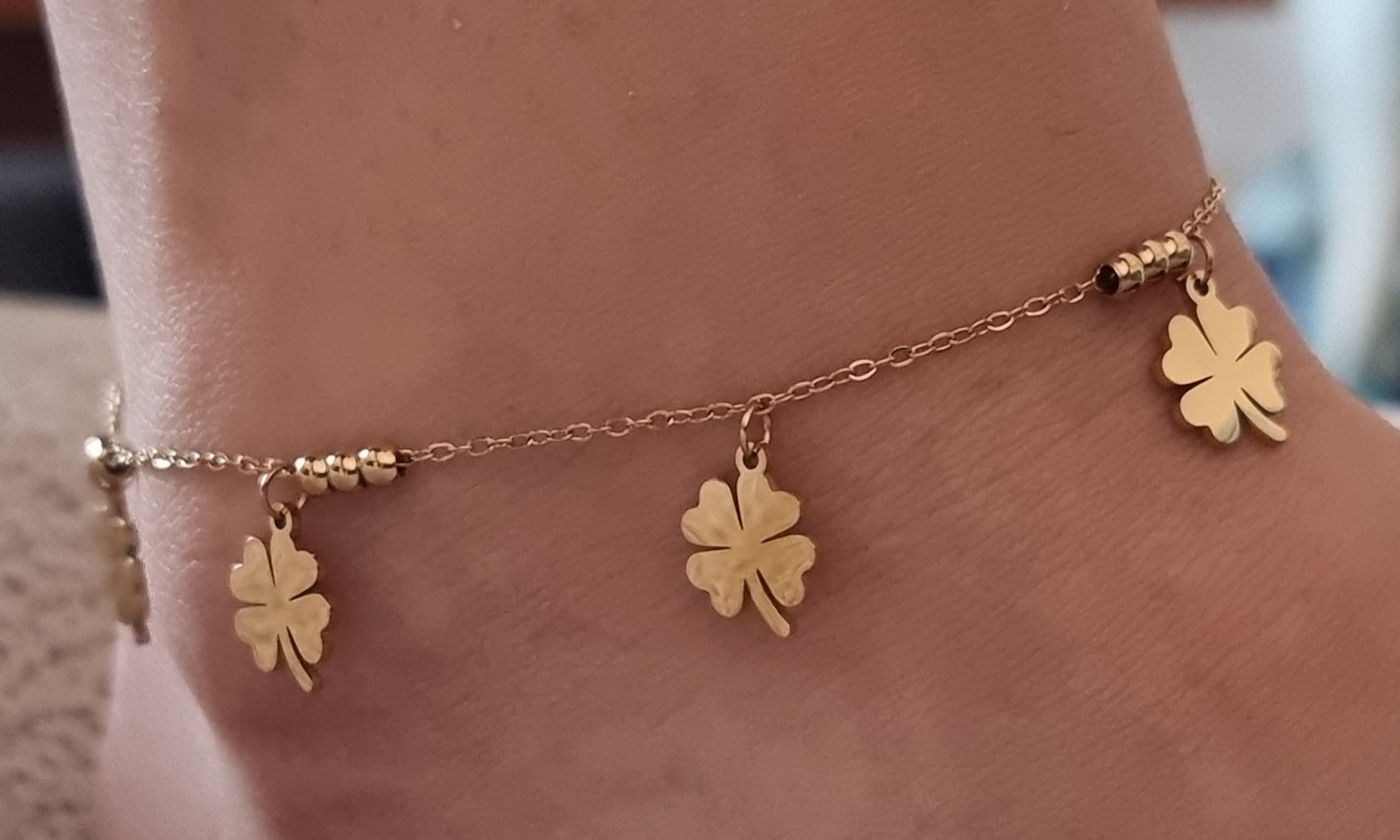 Chaîne de Cheville Dublin en trèfle et perles.
