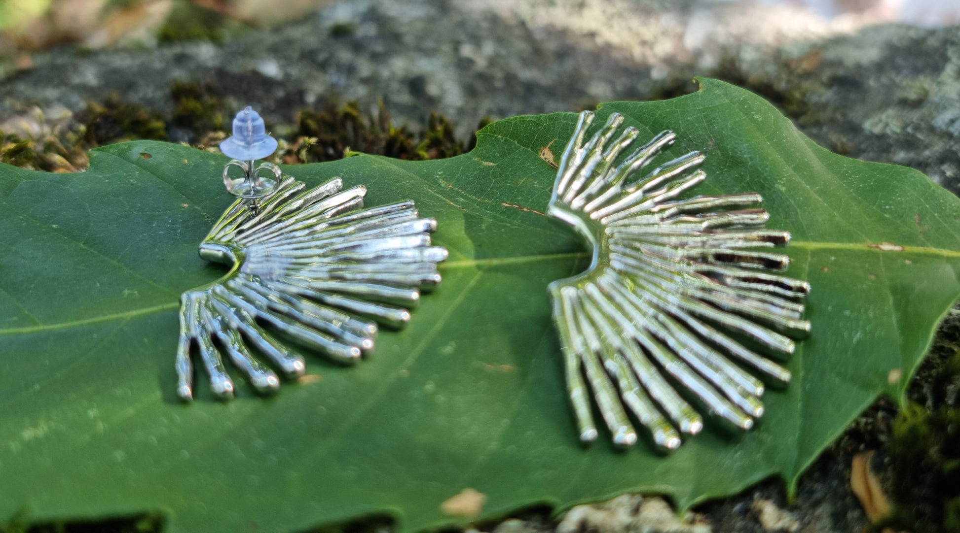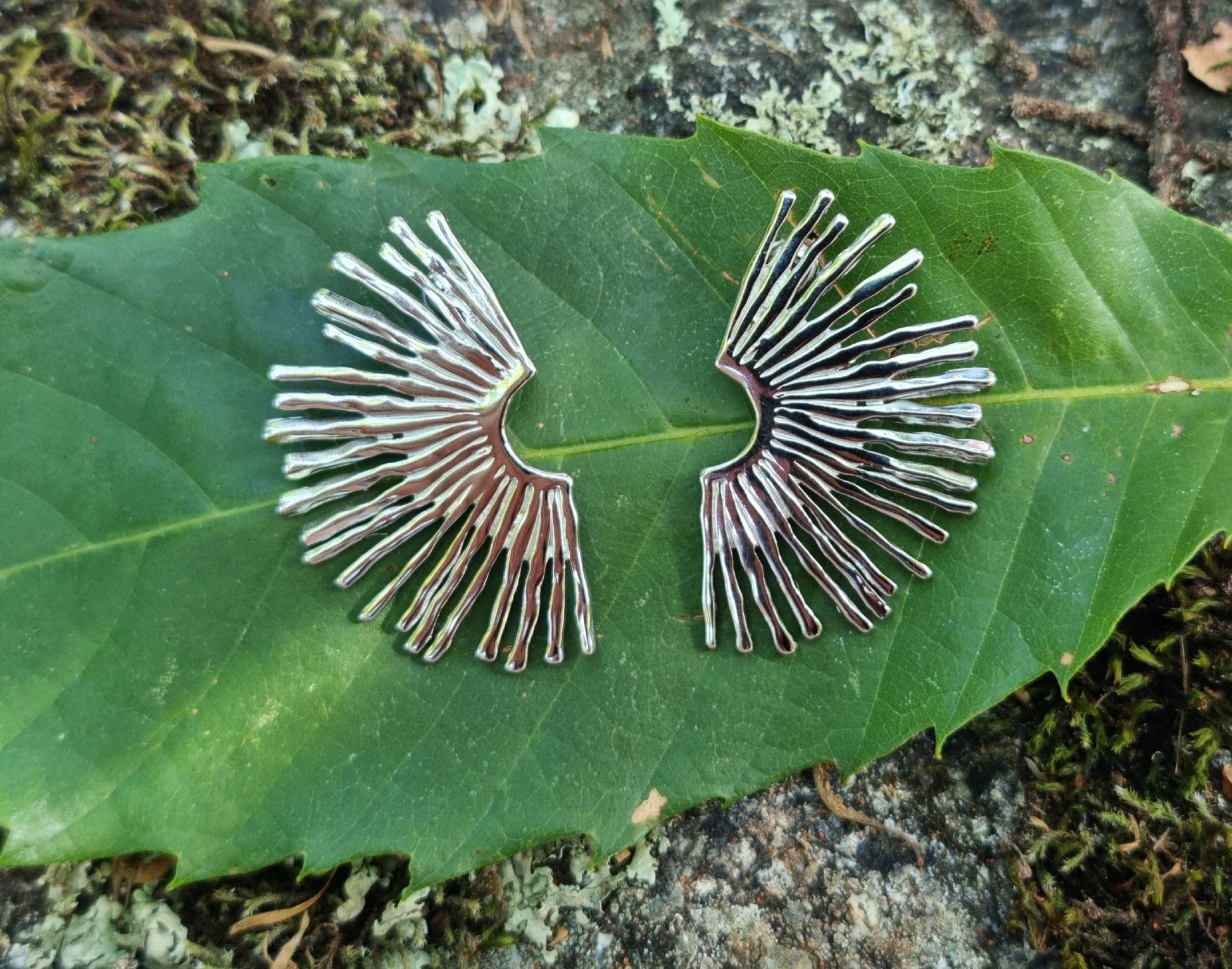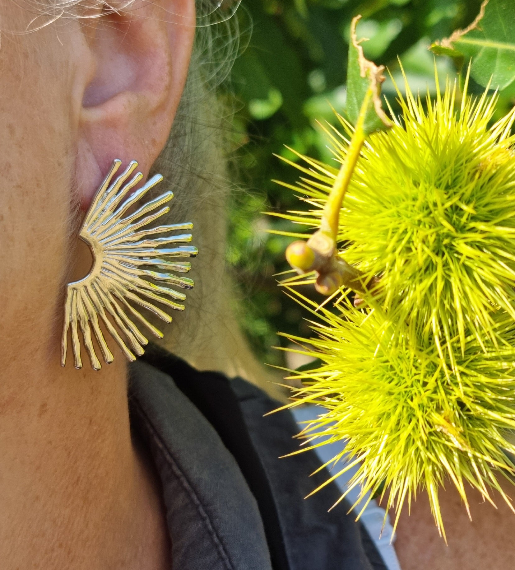 Boucles d'oreilles Sole argentées en forme de demi-soleil.
