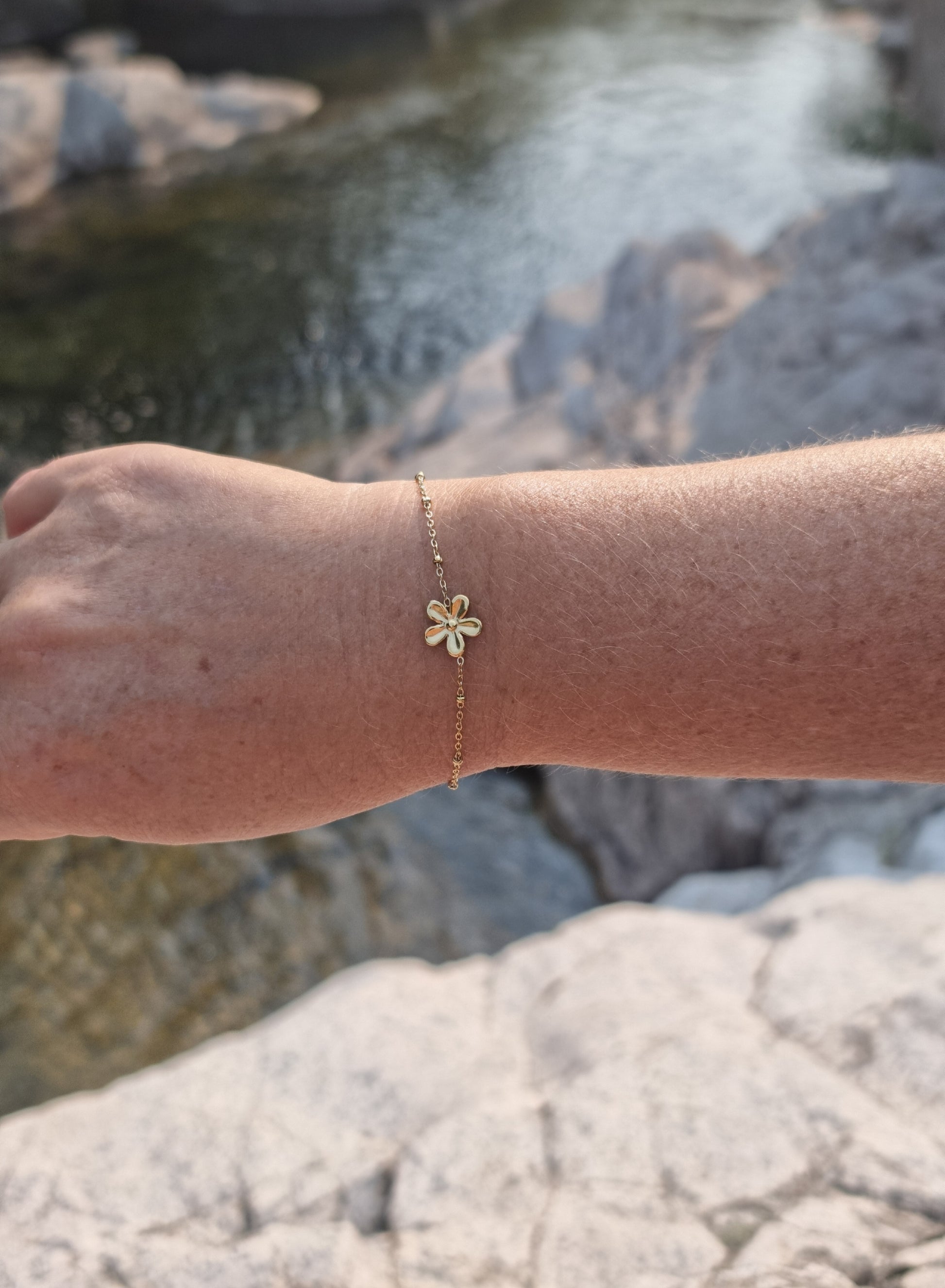 Bracelet Marguerite en chaîne dorée orné d'une délicate fleur et de petites perles qui lui confèrent une touche d'élégance.