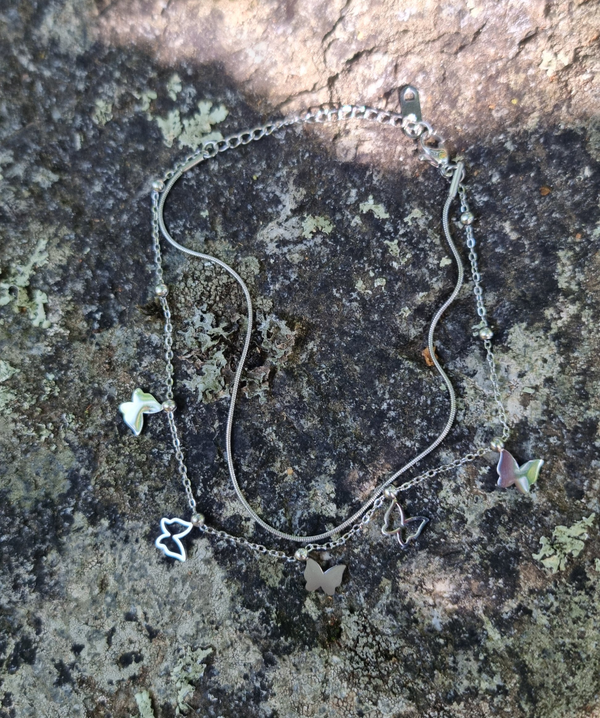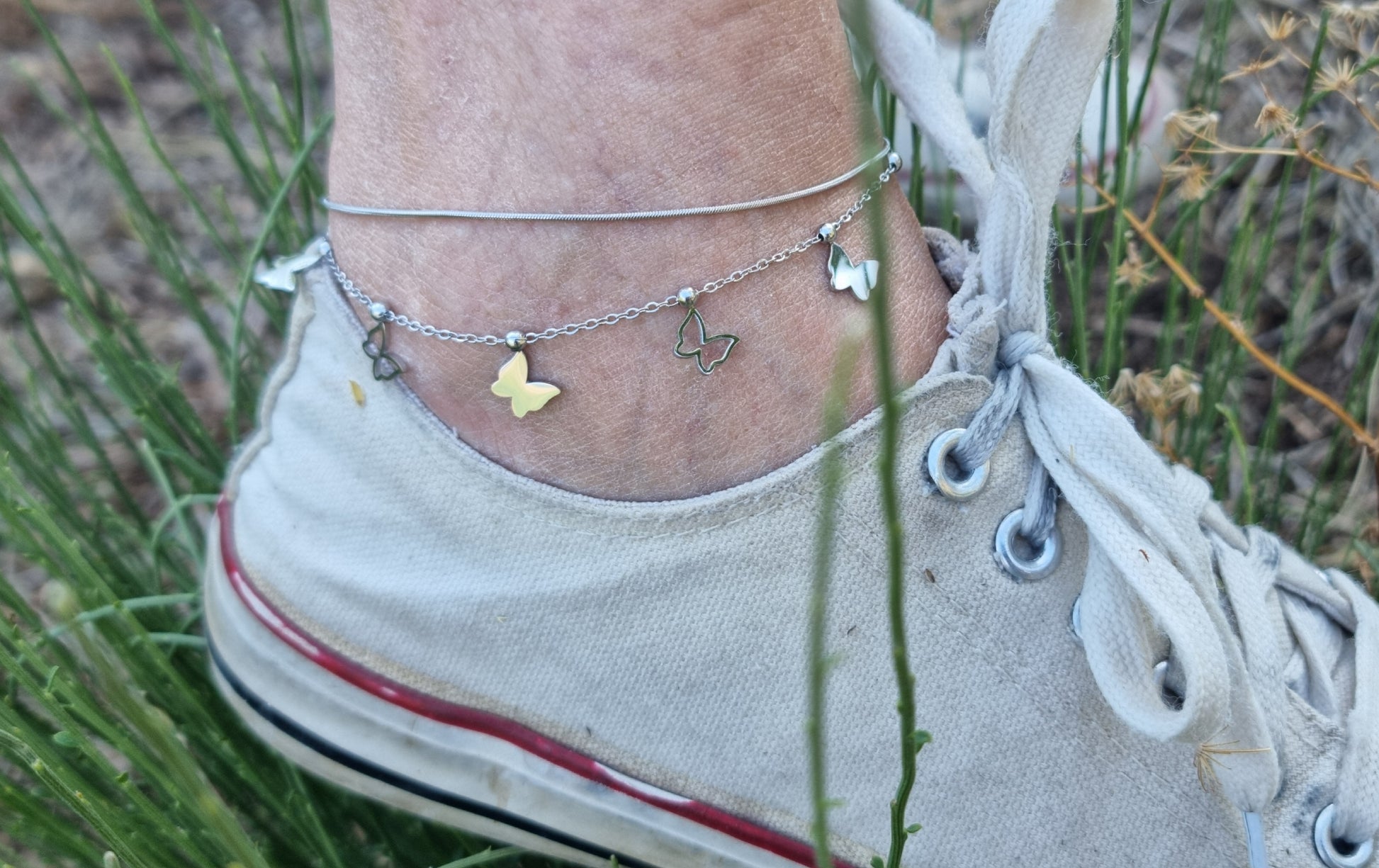 Chaînes de chevilles Papilia composées de deux rangs : une simple et une ornée de papillons.