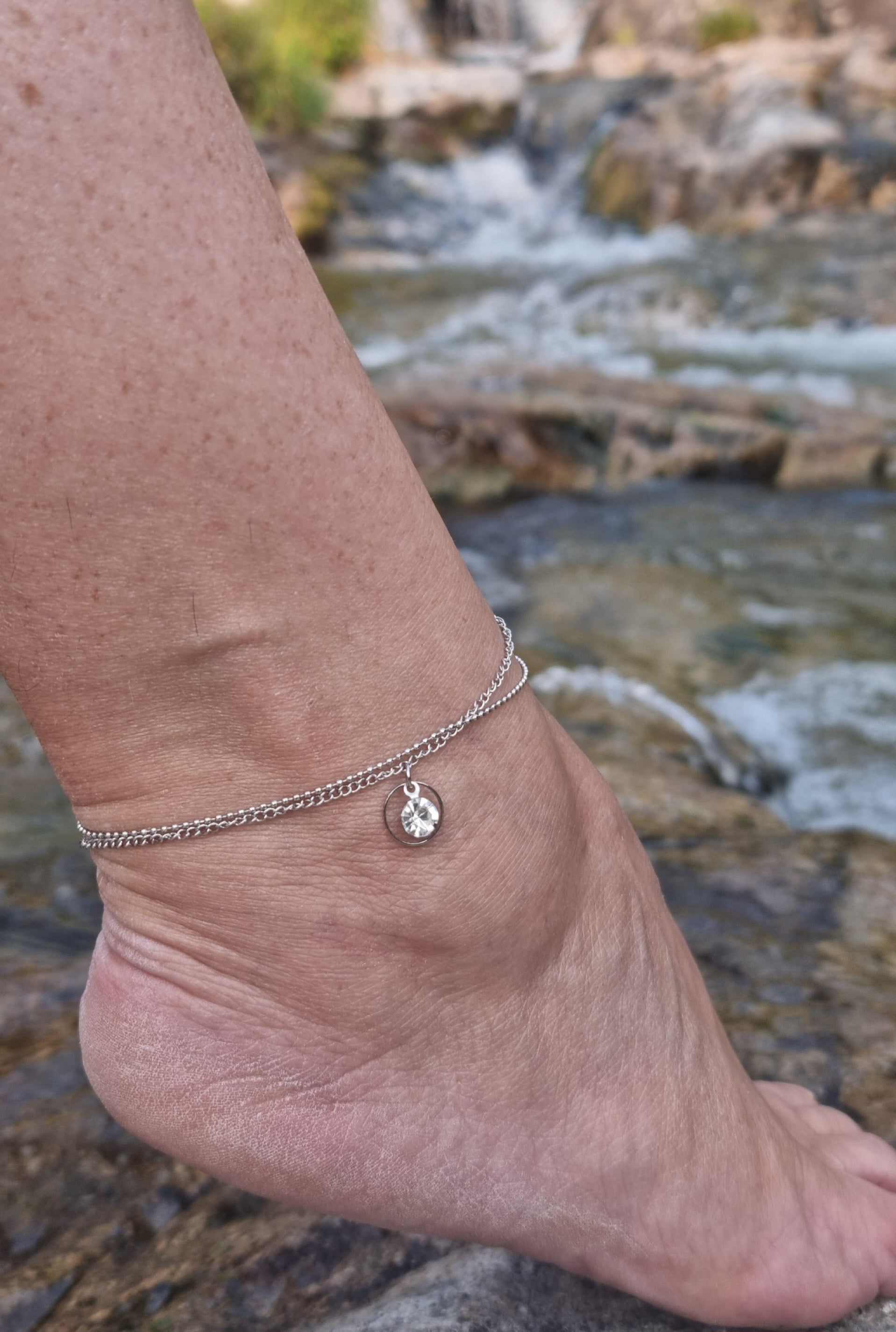 Chaînes de chevilles Clarté à deux rangs avec un rond et un strass.